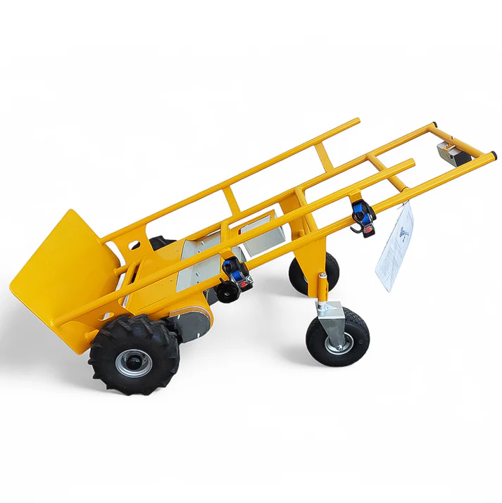 - Der Akku-Schwerlastrodel besitzt eine automatische Feststellbremse für sicheres Abstellen.